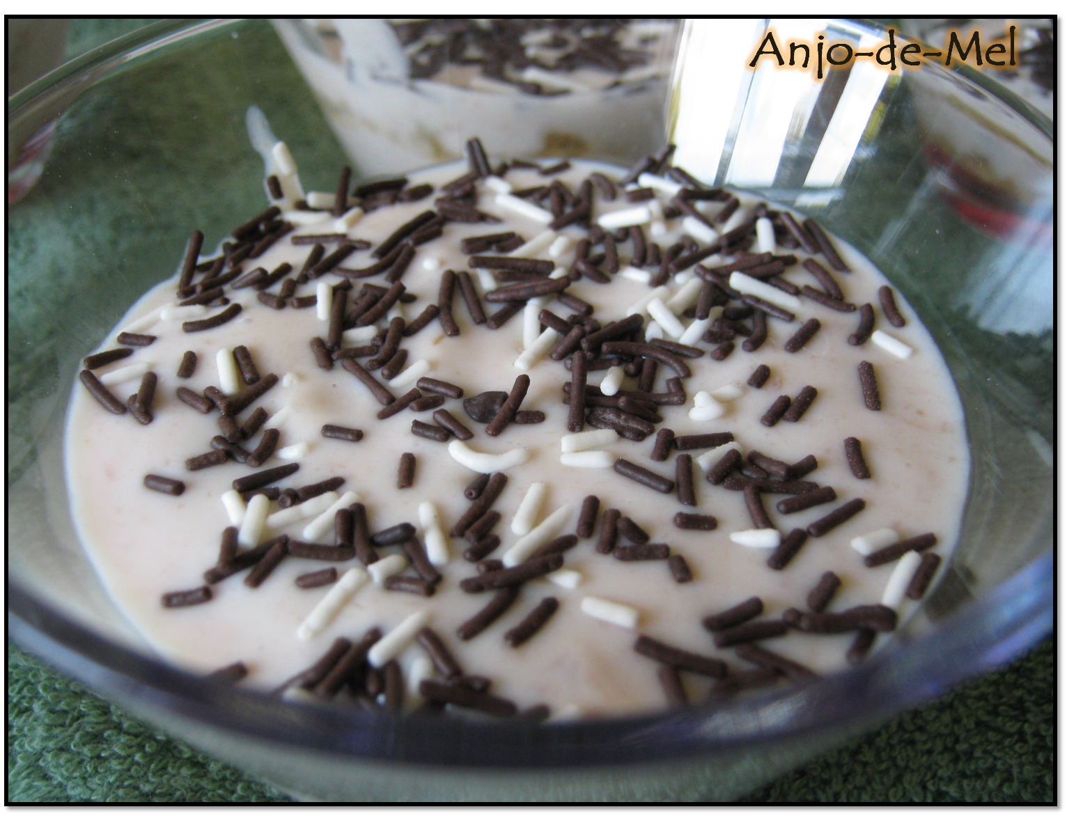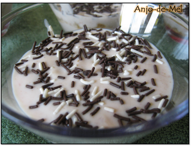 Polvilhar cada tacinha com um pouco de granulado de chocolate e levar ao frio até ao momento de servir.