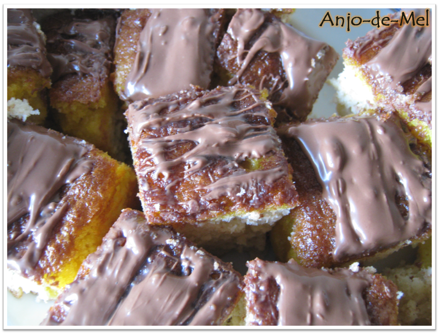Bater os ovos com esta mistura e o resto do açúcar. Juntar o côco, oóleo, a farinha e o fermento. Bater bem. Deitar numa forma rectangular (servi aos quadradinhos mas também podem utilizar uma redonda) untada e enfarinhada e levar a forno pré-aquecido a 190ºC.