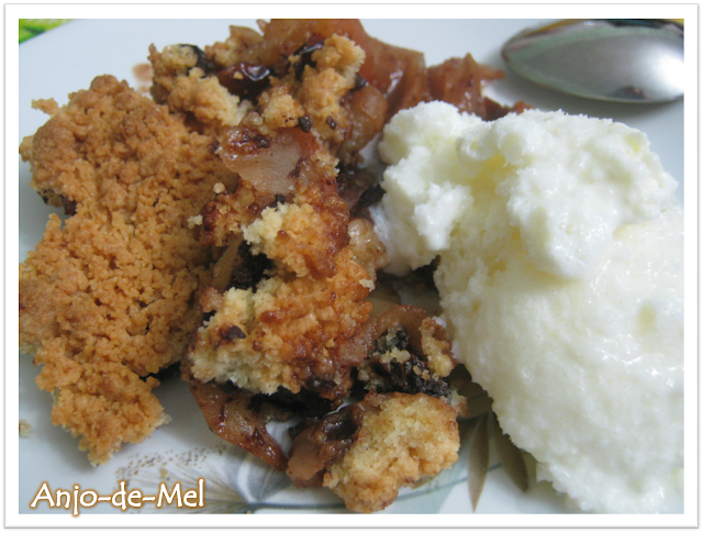 Adicionar a manteiga e trabalhá-la com a ponta dos dedos até obter uma areia grossa.