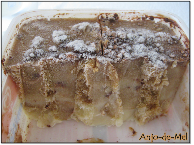 Nota: receita adaptada do livro 'A Vida Secreta dos Gelados Caseiros' de Rita Nascimento. Os cristais de gelo que vêem na foto é do cacau em pó, que ficou assim após uma semana no congelador (altura em que a fotografia foi tirada).