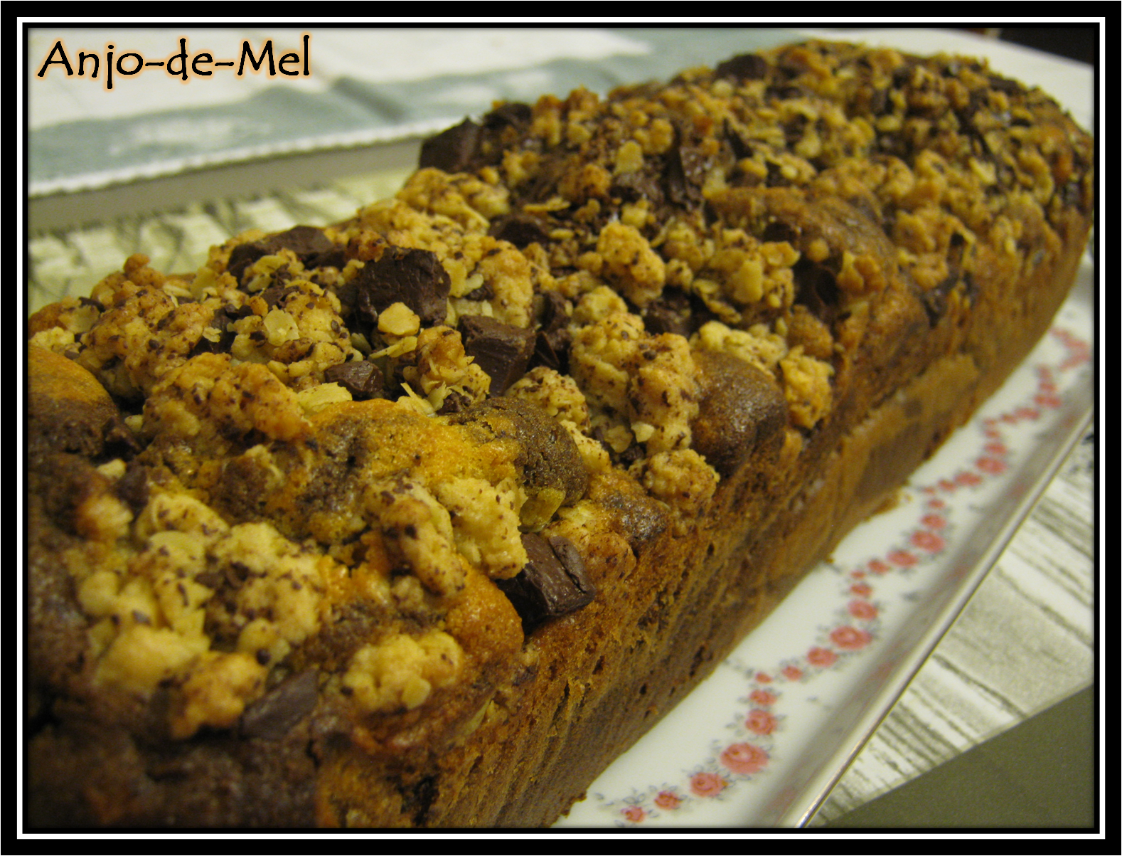 (Se o crumble já estiver dourado e o bolo ainda não estiver cozido, colocar uma folha de alumínio para terminar a cozedura, mas no meu caso, não foi necessário).